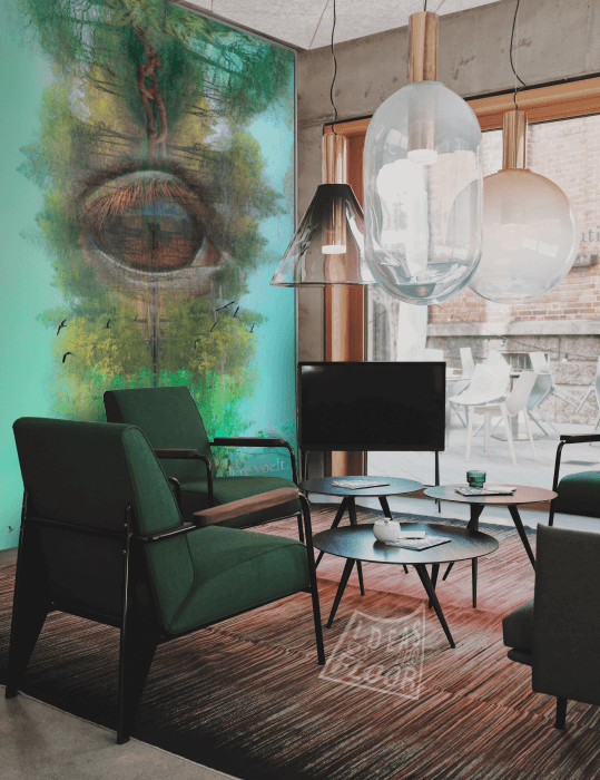 De kleuren, groen, geel en oranje, geven het geheel een warme en uitnodigende sfeer. Je aandacht wordt onmiddellijk getrokken naar het oog en pas later zie je dat je een fris landschap in het vroege voorjaar staat te bewonderen. Deze kunstzinnige foto One Eye is een waardevolle toevoeging aan iedere kunstcollectie en zal zeker een gespreksonderwerp zijn voor iedereen die binnenloopt.